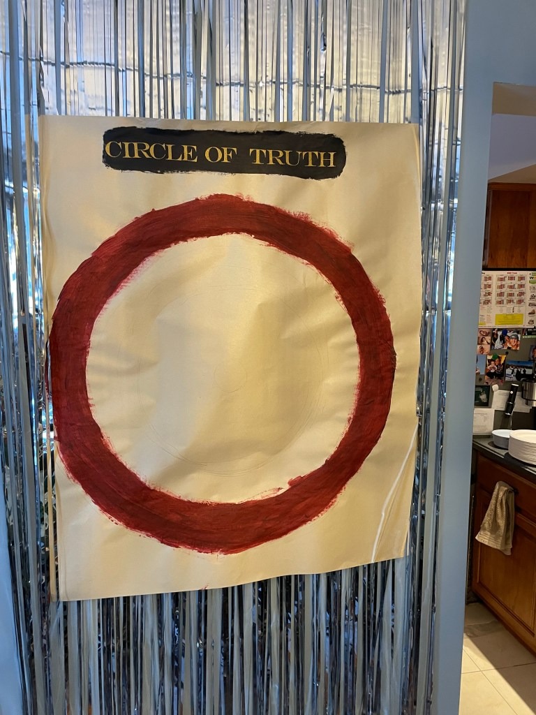 A very important step, even if you have seen every season of traitors is to write out the rules and procedures of the game. We chose to relay this information in the same theatrical manner as the host, Alan Cummings, but the theatrical flare is up to you. There is no right or wrong way to throw this party, so make it your own and do whatever makes you feel comfortable!