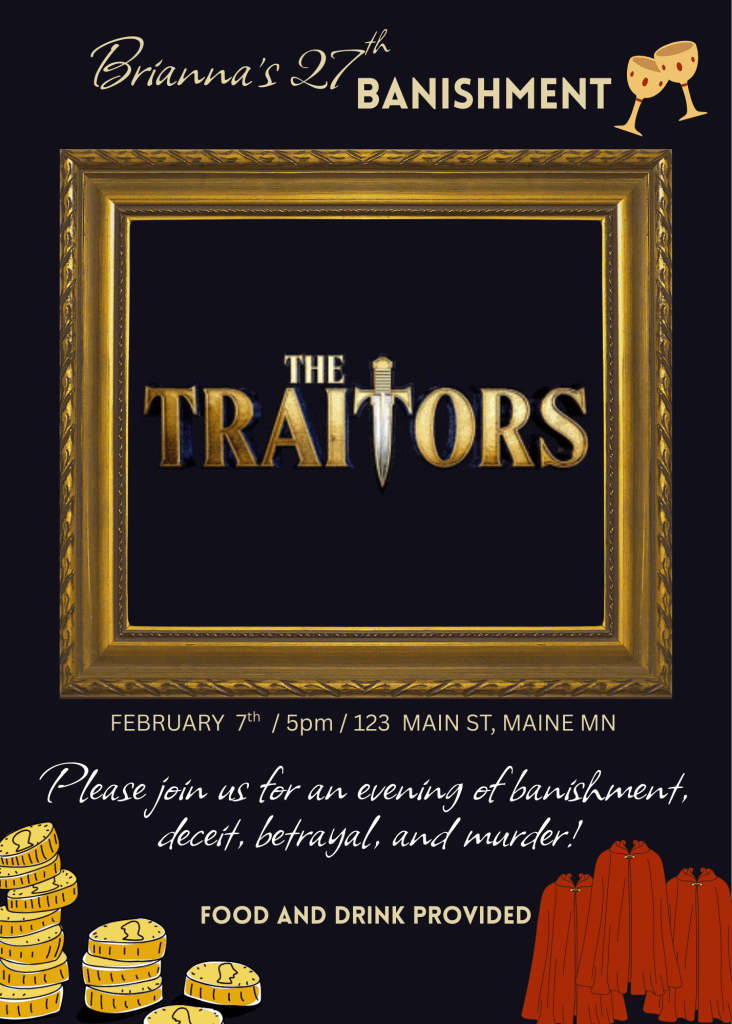 Please let us know if you try this out or if you have any questions about the logistics of hosting a Traitors party.